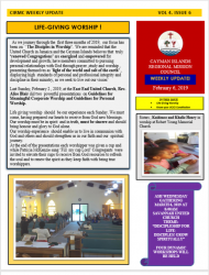 As we journey through the first three months of 2019, our focus has been on ‘The Disciples in Worship’. We are reminded that the United Church in Jamaica and the Cayman Islands believes that truly ‘renewed Congregations’ are energized and empowered for development and growth; have members committed to pursuing personal relationships with God through prayer ,study and worship , presenting themselves as ‘light of the world and salt of the earth’ , displaying high standards of personal and professional integrity and discipline in their ministry, as we seek to live out our vision’ Last Sunday, February 2, 2019, at the East End United Church, Rev. Alice Blair did two powerful presentations on Guidelines for Meaningful Corporate Worship and Guidelines for Personal Worship. please click here for more information (PDF file) |