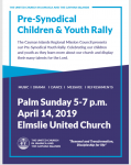 All are invited to attend the Pre-Synodical Children & Youth Rally for the Cayman Islands Regional Mission Council. This will be held on Palm Sunday , April 14, 2019 at 5:00 pm at the Elmslie Memorial United Church.